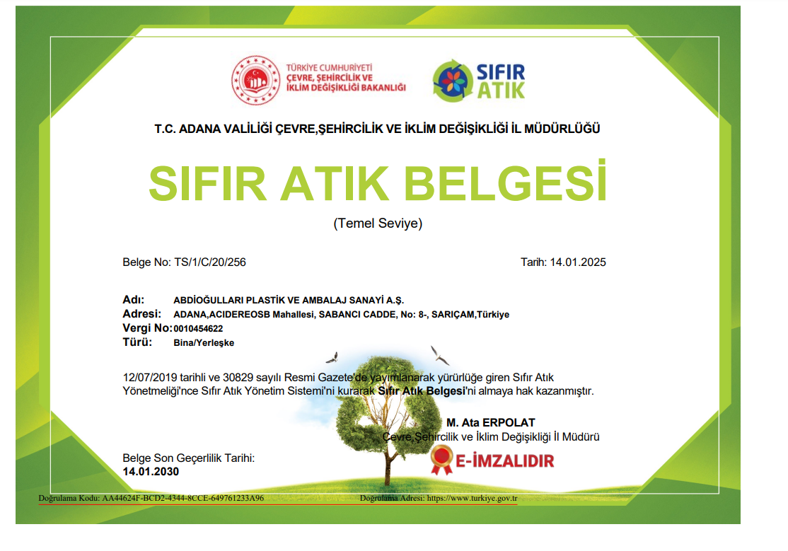 ABDİOĞULLARI SIFIR ATIK BELGESİ